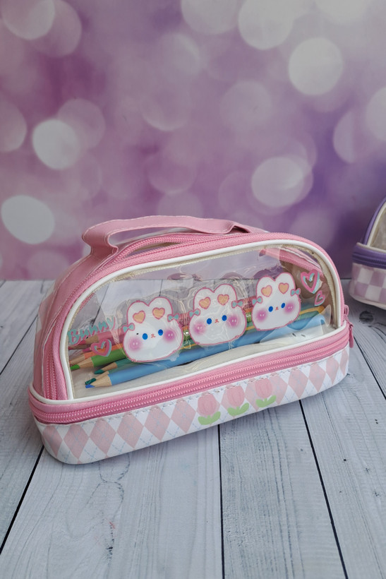 جامدادی شفاف دو زیپ دسته دار با طرح چشم نواز و فضایی که دارد شما را از حمل کردن چند جامدادی بی نیاز کرده و چون شفاف هست به راحتی میتوانید وسایل خود را در ان پیدا کنید.