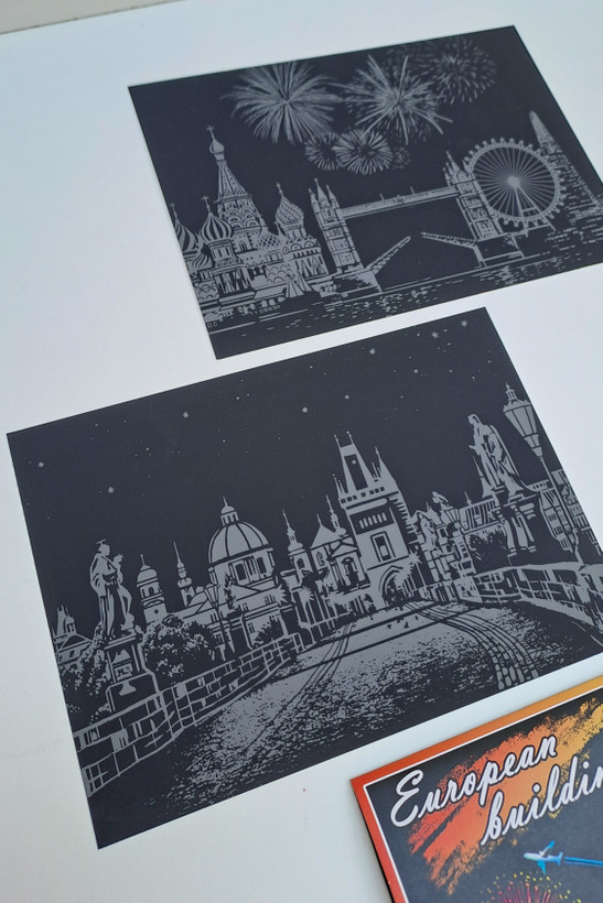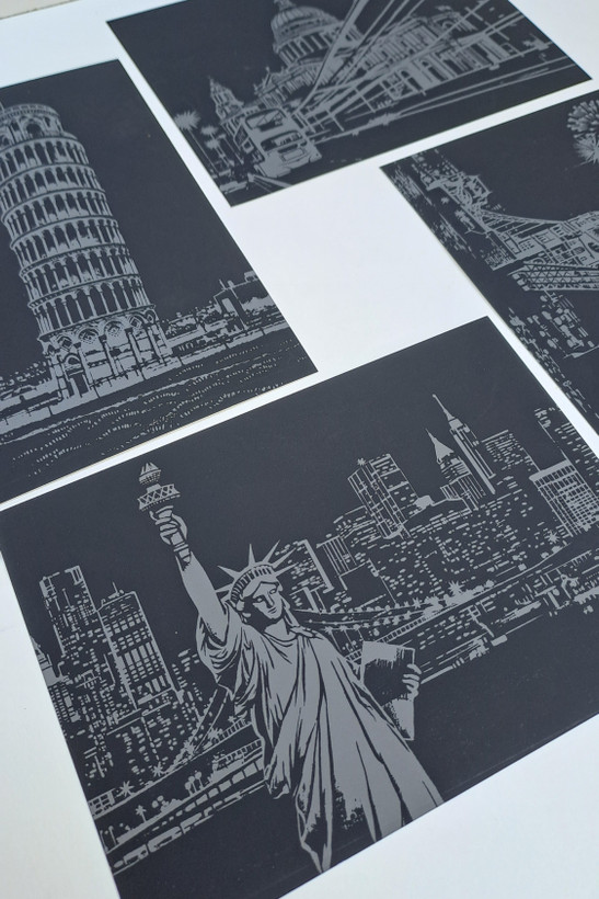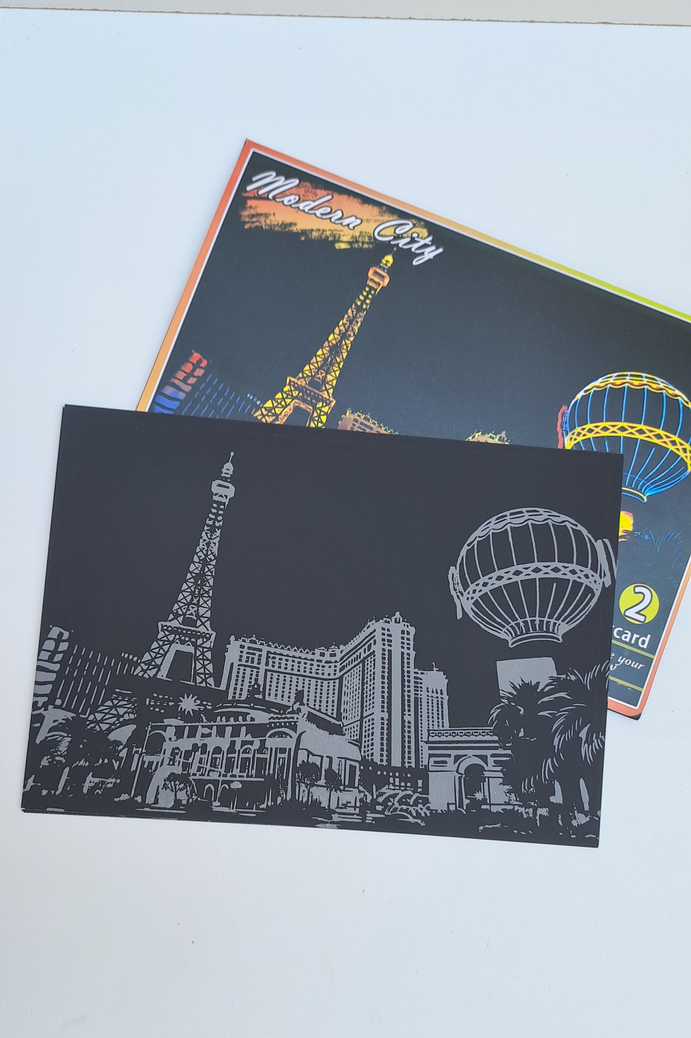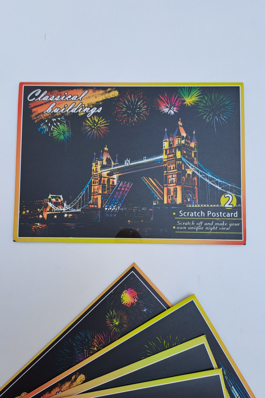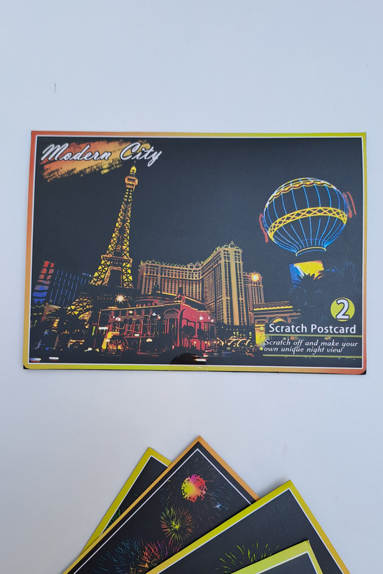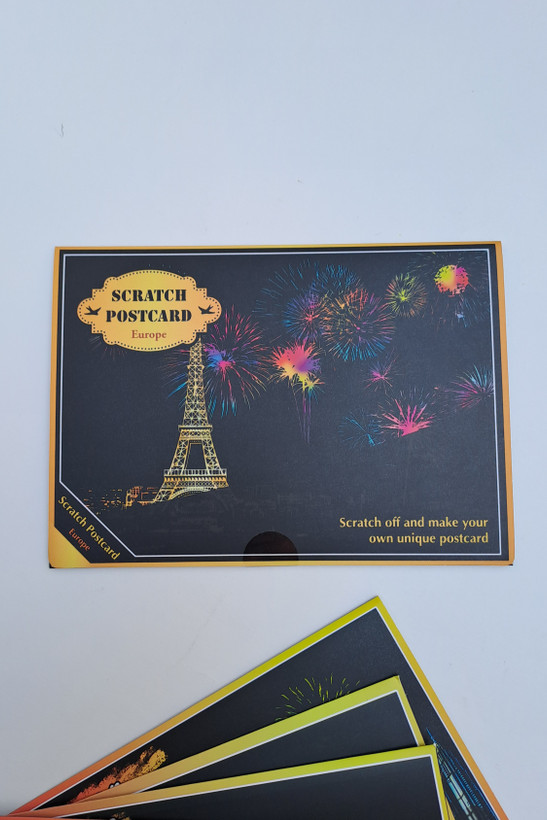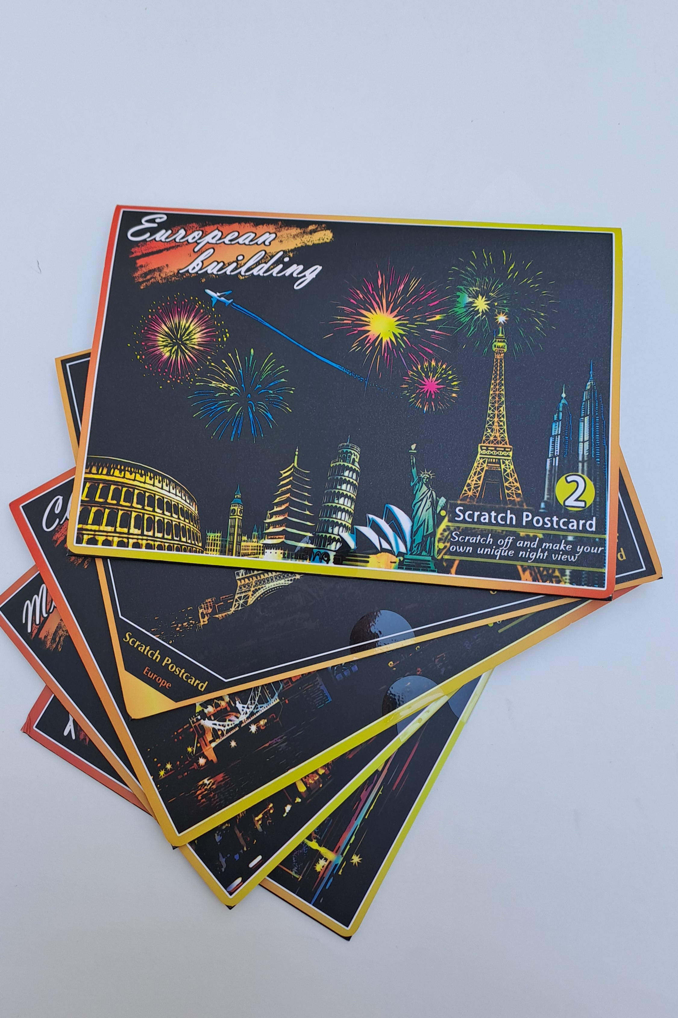 هر پک حاوی ۴برگ اسکرچ برای خراشیدن و خلق یک کارت پستال زیبا میباشد.