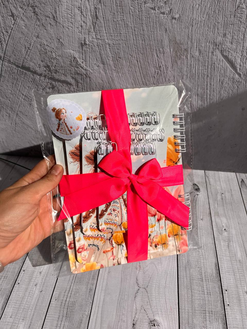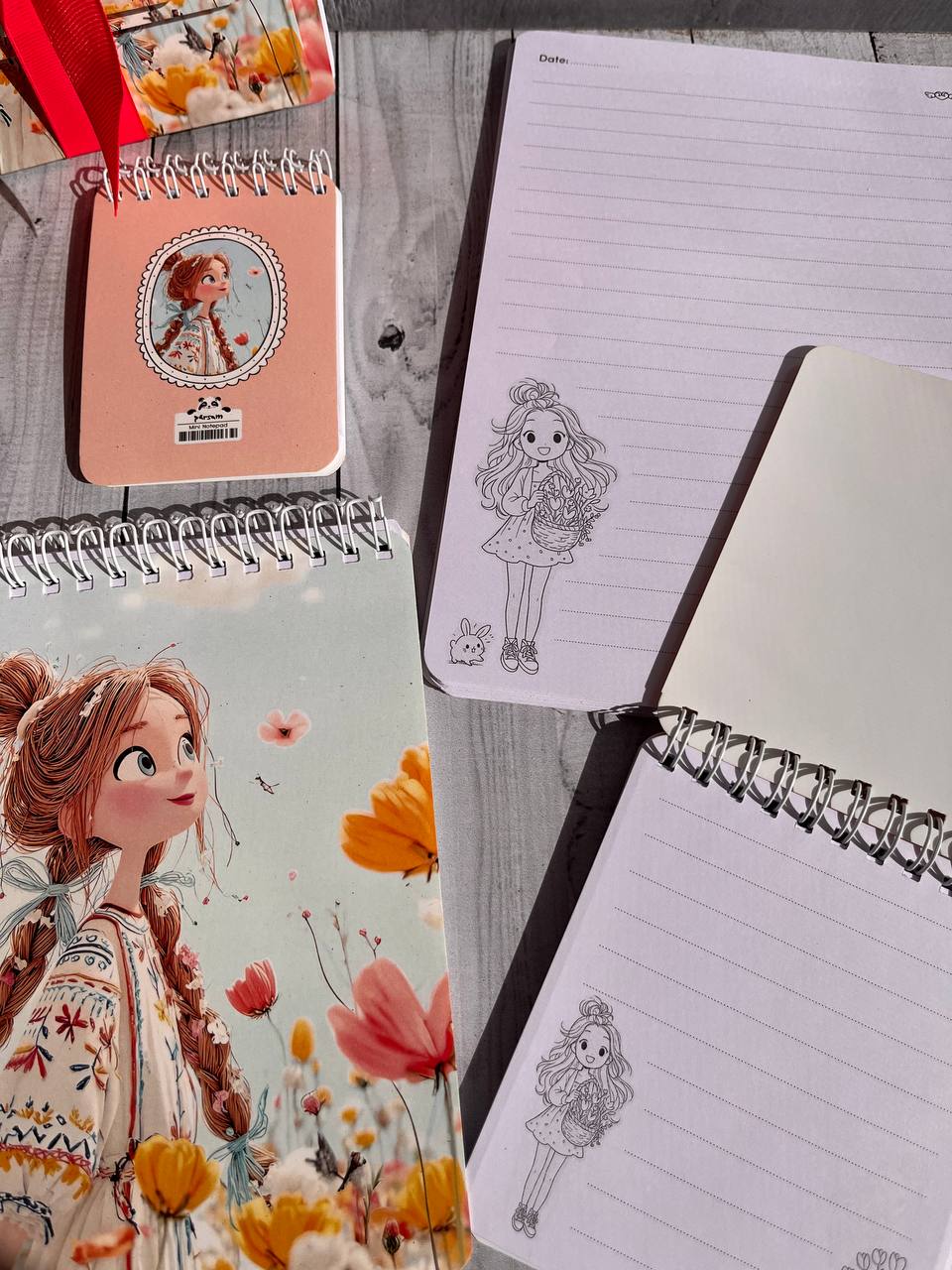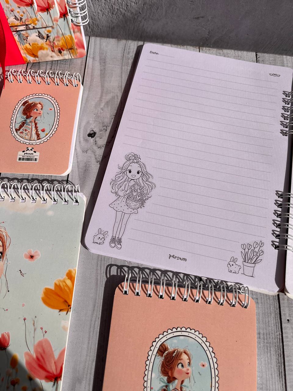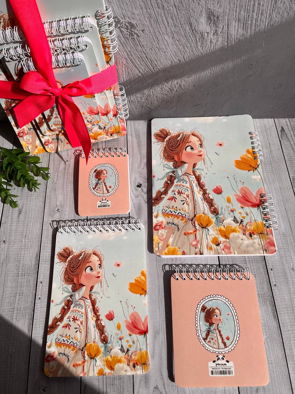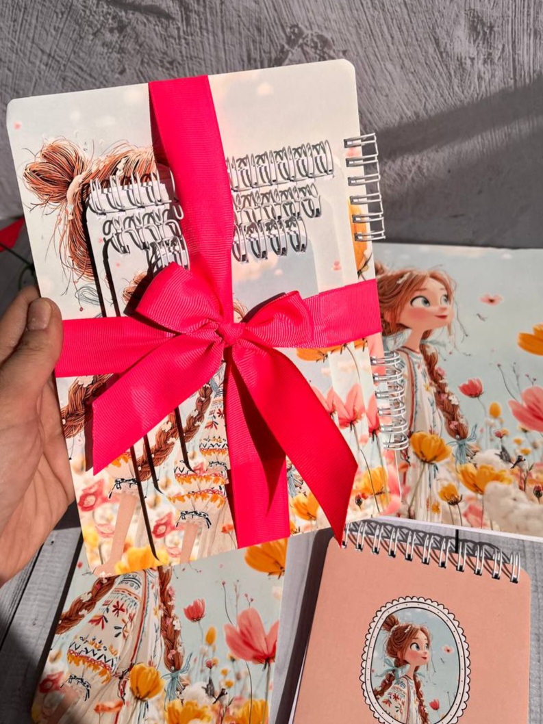 هر ست شامل 1 دفتر + 3 دفترچه جنس: مقوا بسته بندی: سلفون و ربان کادوپیچ ویژگی: طرح داخل صفحات با جلد یکسان است. ابعاد دفترچه ها: 22×15-11×15-12×10-10×7