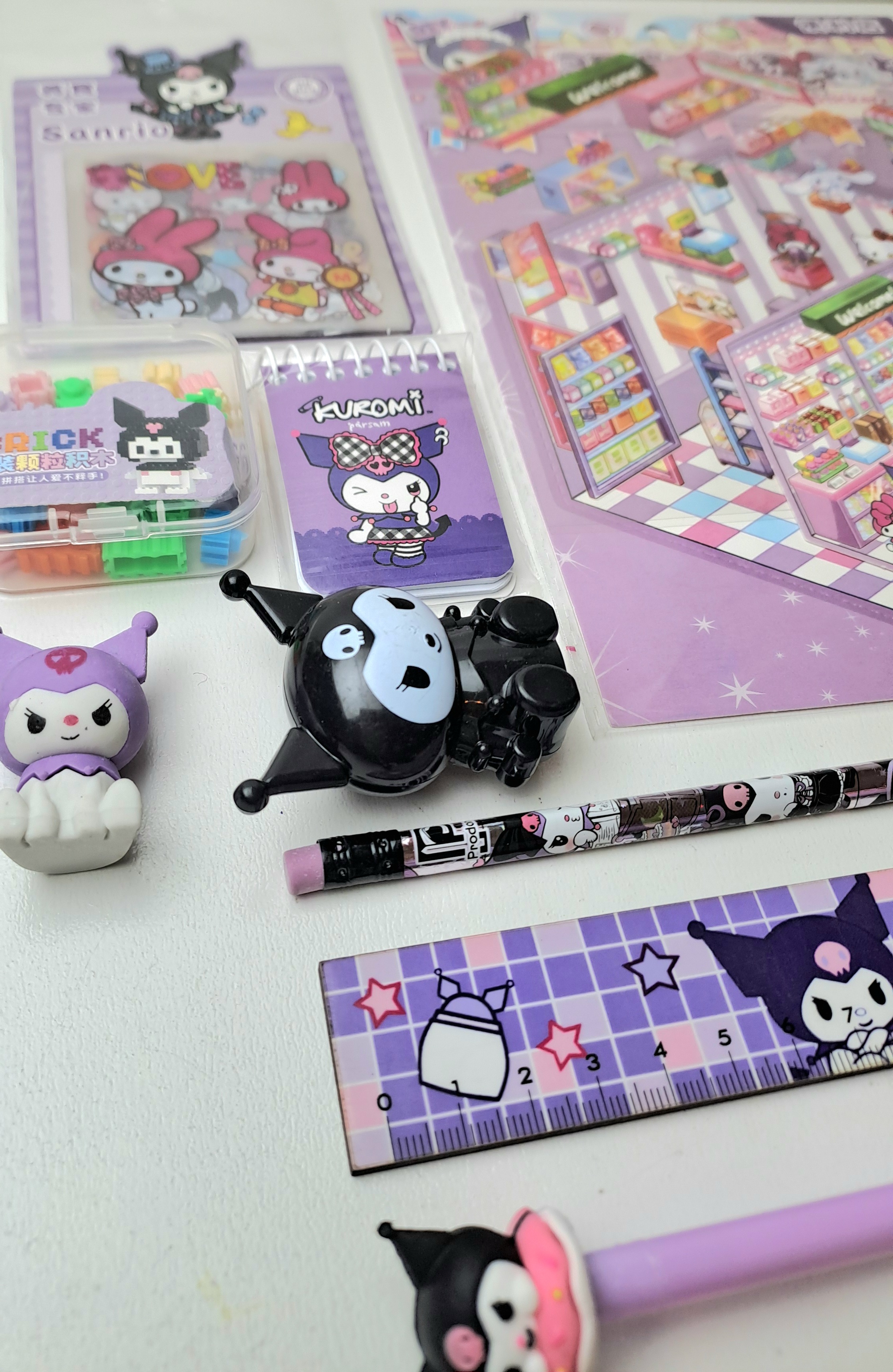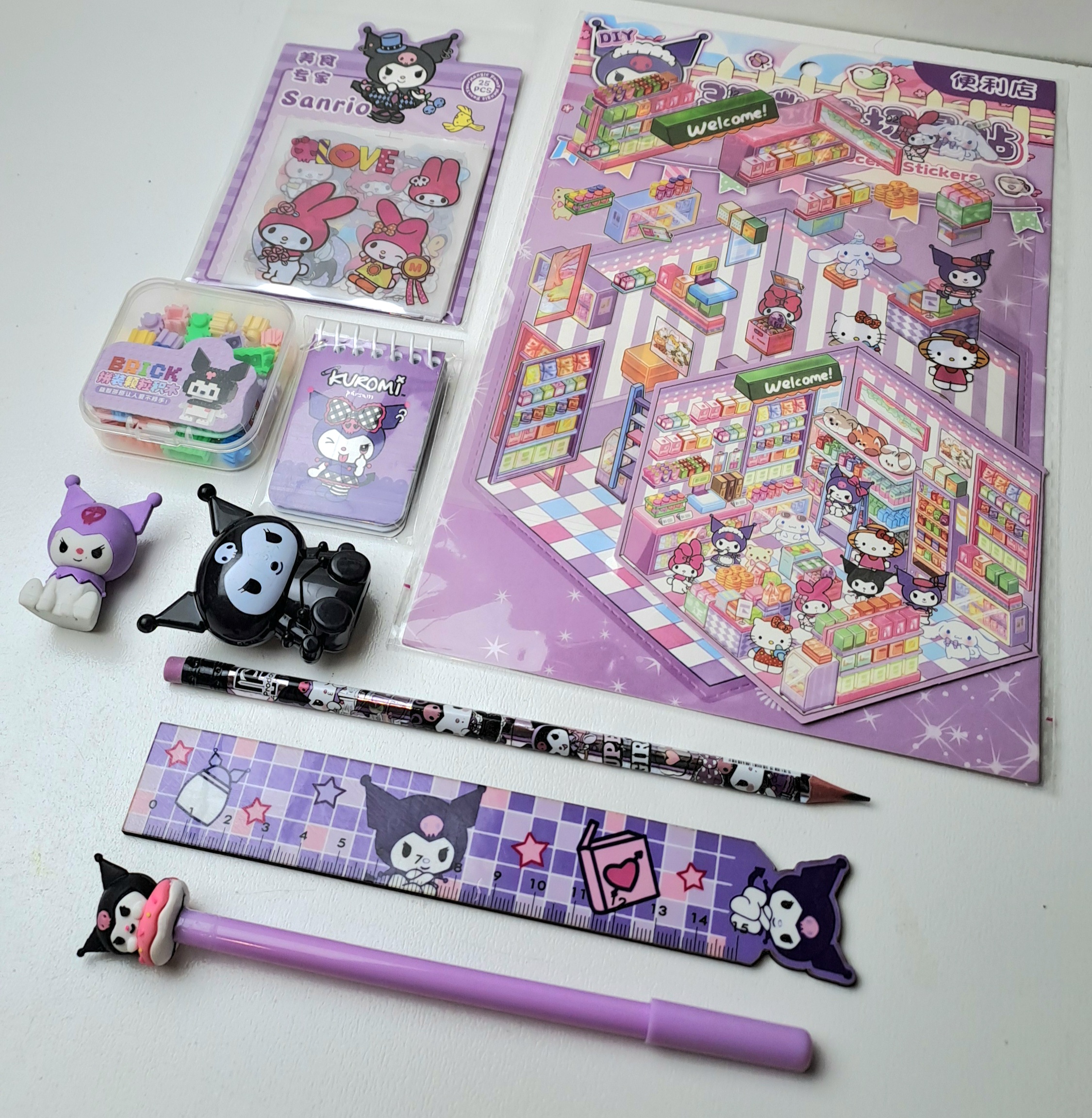 استیکر سه بعدی چیدمانی، لگو،دفترچه، پاکن، تراش،مداد، خطکش ، رواننویس ، پک استیکر